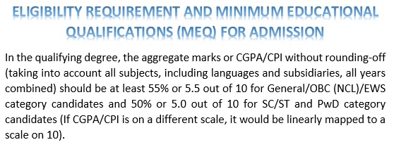 Candidates only who have scored 55% marks (50% for SC/ST) in the Master’s Degree Examination are eligible to appear for the examination.