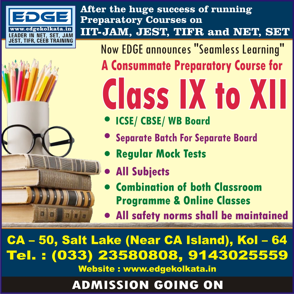 From the starting of the year 2020,EDGE,sets forth a new journey to introduce a complete preparatory course for school students appertaining to CBSE / ICSE / WB board.