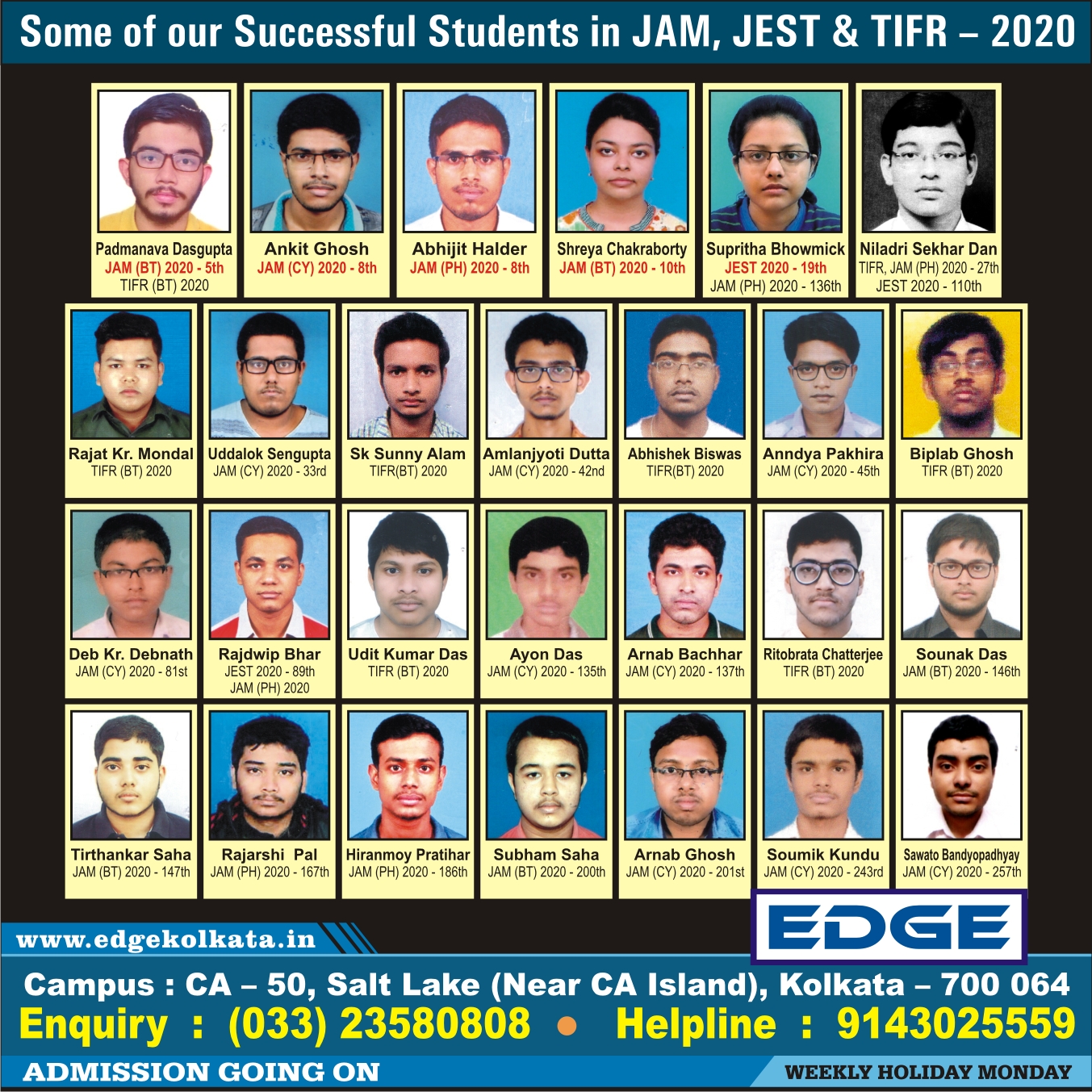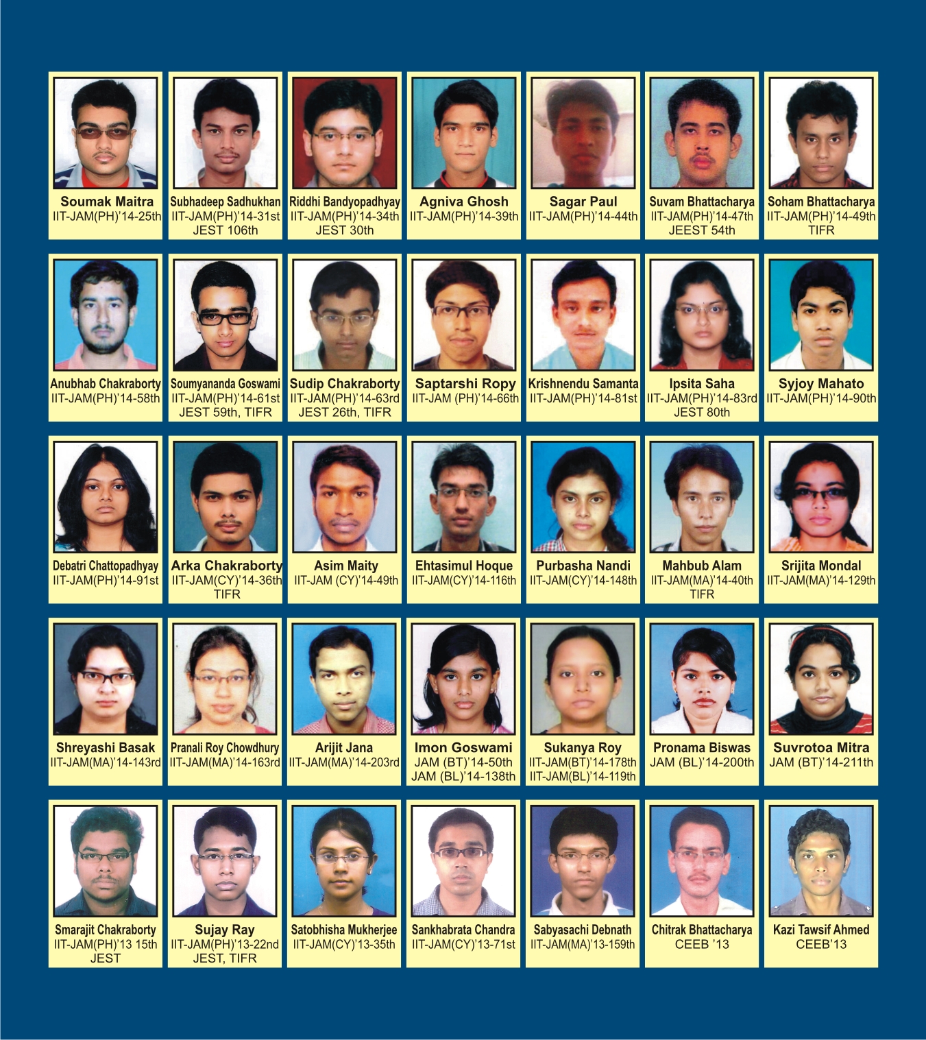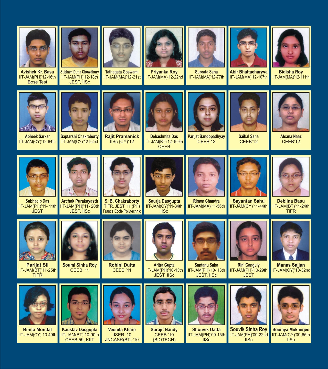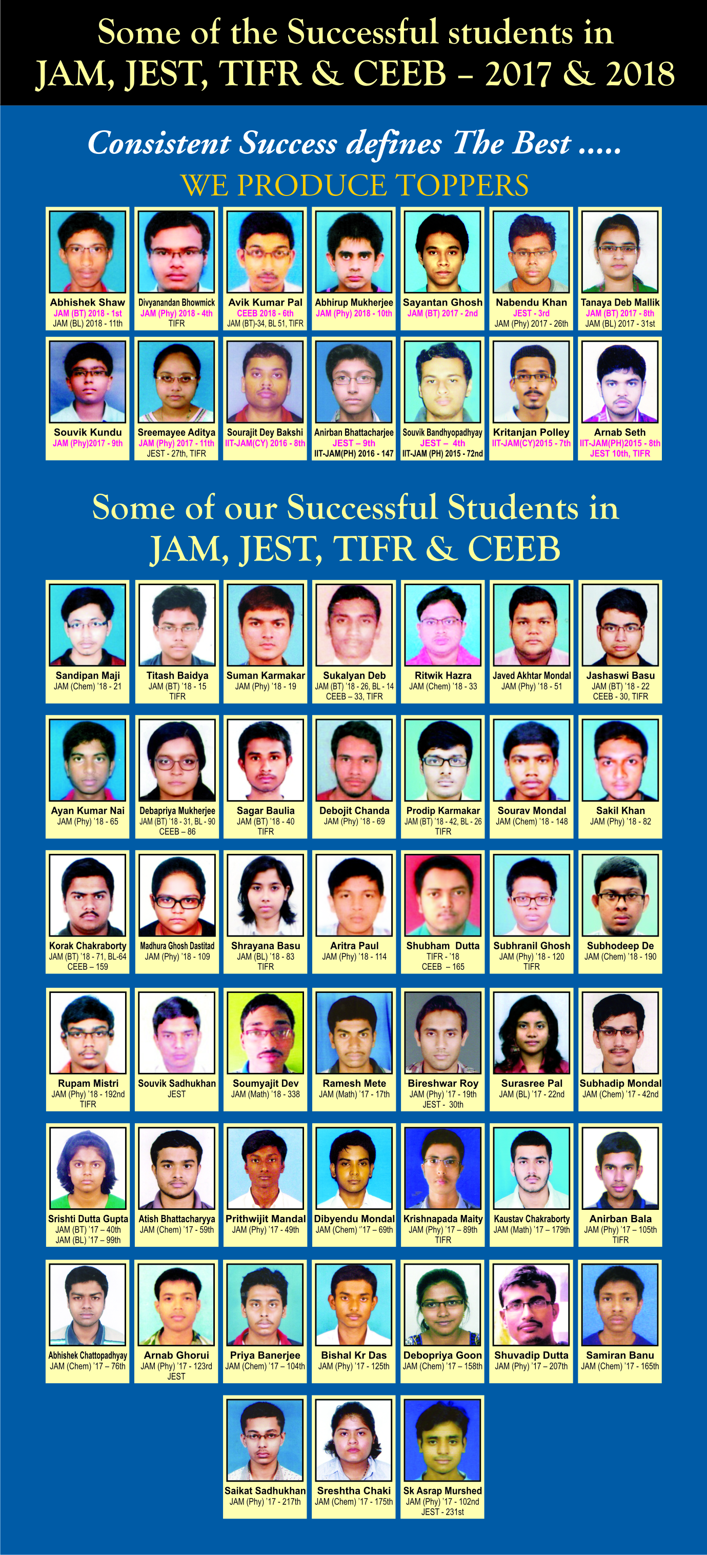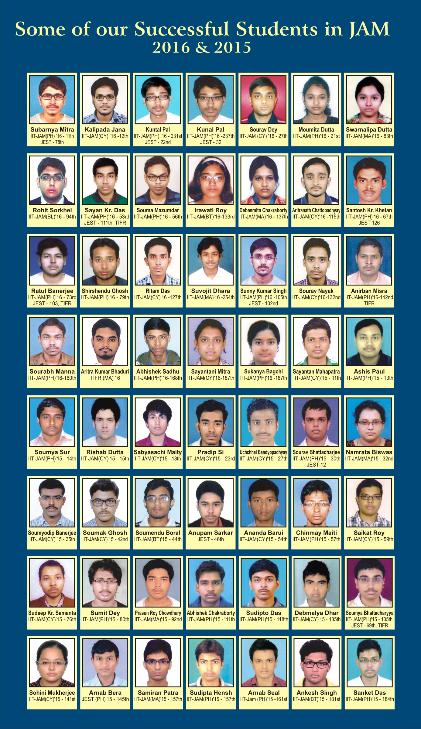 Some of our successful students in JAM, JEST, TIFR, CEEB