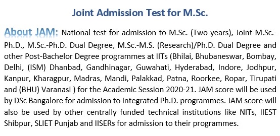 Again, for those who could not crack the IIT-JEE after 10+2 for doing Bachelor degree in Engineering in Ills, JAM (Joint Admission Test) has opened an alternative avenue after 10+2+3 to pursue M.Sc. in the coveted IlTs of their dream. It hardly needs mentioning the edge of a M.Sc. from an IIT over the rest.