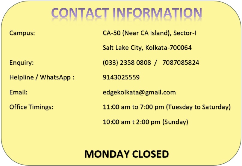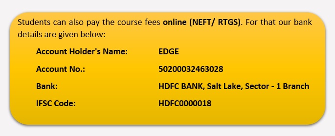 The course fees are to be paid by cash or cheque / demand draft drawn in favour of EDGE payable at Kolkata.